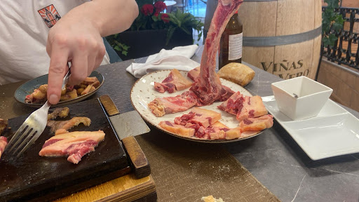 Read moreHemos comido hoy en el restaurante y los camareros han sido muy amables pero el servicio ha sido un poco desastroso. Hemos pedido unas patatas bravas para compartir que estaban verdaderamente riquísimas, y luego dos platos combinados de pechugas ( muy buena cantidad, las pechugas demasiado hechas pero buenas) y un risotto. Primero nos han puesto los platos combinados a mí y a mi hija y luego 20 minutos más tarde el risotto a mí marido. Estaba súper duro y cuando lo hemos dicho lo han retirado y 5 minutos más tarde y ya al dente y no duro lo han vuelto a traer pero evidentemente nosotras hacia rato que habíamos terminado. No nos ha gustado nada comer a destiempo ( hubiéramos esperado gustosamente a que le sirvieran a él). El restaurante es enorme pero nos han puesto a la entrada y con otra mesa al lado que al pedírse un chuletón y no haber extractor hemos salido con muchísimo olor en la ropa...