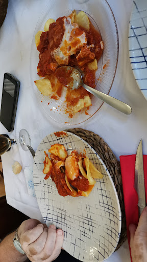 Pedimos unas papas con tomate y huevo que estaban muy buenas y suave, el tomate lo hacen ellos y la verdad es que es una maravilla. Y también las papas arrieras ( que estaban de escándalo) y una pierna de cordero. Personalmente, no me gusta mucho el sabor del cordero, lo veo muy fuerte. Pero la verdad que esta vez me sorprendió, el sabor era rico y muy suave, la verdad que me encantó. El cocinero fue muy amable también que salió un par de veces para decirnos como iba el cocinado, y la verdad que muy atento también de que estuviéramos bien y agusto. Y por último, pedimos la tarta de queso casera que también hacen ellos y que estaba espectacular. A mi no me gusta, y me la comí jajaja así que la verdad, es que estaba todo muy bueno y con muy buen sabor.