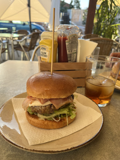 Tiene una carta (adjunta) que tiene unas hamburguesas de diferentes tipos muy buenas, sandwiches y bocadillos (simples 3€ y los demás 3,5€).