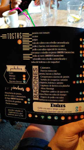 En el territorio de comida, tiene una selección pequeña de tapas en barra, pero tiene una lista de raciones que lo completan como bar.