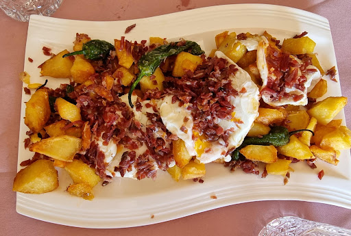 Read more7-2023 Fuimos a cenar 5 personas previa reserva. Puedes estar dentro o en terraza en plena calle principal. Con la bebida nos trajeron unas aceitunas gigantes muy ricas. Pedimos todo para compartir. Croquetas de jamón ibérico. Sirven 8 unidades bastante grandes. Muy ricas, crujientitas por fuera y cremosas por dentro y con sabor. Provolone. Estaba rico. Complicado de servir (nos dieron 2 cucharas). No entendimos muy bien lo del tomate caramelizado que decía la carta que traía. Encima del queso había una rodaja de tomate, pero absolutamente nada dulce, parecía una rodaja fresca metida al horno. Lo sirven con unos panecillos tostados. Pero vamos, que estaba rico. Calamares. Con su limón y una suave ali oli. No estaban mal, pero pecaban de duros. Los bocados con patas estaban incluso demasiado duros. Cachopo de ternera. Muy muy rico (y la mayoría de la mesa era asturiana, sabemos de qué hablamos). Con cantidad de jamón dentro, la ternera tiernísima, crujiente por fuera y con bastante queso. Acompañado de patatas fritas y 3 pimientos del piquillo (los pimientos un pelín pelín crudos).