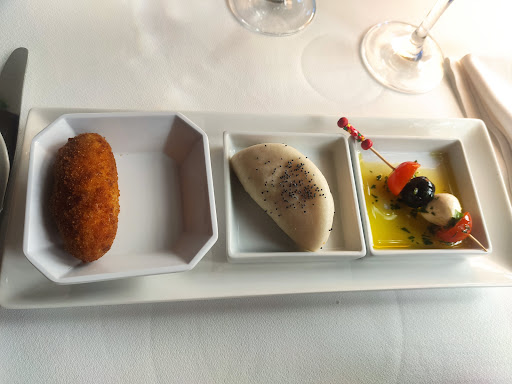 Read moreFuimos a este restaurante por medio de un Groupon, que consiste en un menu degustación para 2 personas. El lugar es bonito y agradable, comedor elegante. El servicio correcto. A continuación los platos: Entrante con 3 aperitivos (1 croqueta, un pan Bao con sobrasada, y el pincho de tomate y mozzarella). 1° plato: ensalada con granada y sardinas ahumadas. 2° plato: crema de potiron (calabaza). 3° plato: un vol au vent Paris (hojaldre relleno de champiñones). 4°plato: un ravioli relleno de bacalao. 5° plato: carne que parecía una tira de lomo con bacon y verduras. La carne tenía bastante grasa y nervios. Lo cierto es que nos esperábamos muchísima más calidad; y más cuando se trata de una estrella Michelin. De los platos que indicaban en Groupon, poco tenían que ver con los que nos pusieron (el último plato de lomo de cerdo en vez del cochinillo, por ejemplo). Los platos venían quemando si los tocabas, daba toda la impresión de que venían recalentados de microondas. Los aperitivos nada del otro mundo, primer y segundo plato no estaban mal, el vol au vent no estaba mal pero se notaba recalentado, el ravioli relleno de bacalao, quizás de lo mejor del menú, el último plato, la carne, pésima, se salvaba mínimamente por la salsa, aun así ni lo terminamos a pesar de lo pequeño que era el plato. El postre una especie de tarta de limón con helado, pero a base de nata, tampoco era ninguna maravilla. A pesar de ir con el descuento que anuncian, me parece caro y malo para lo que es. Por 70€ una pareja, comes bien de carta en cualquier otro sitio sin descuento y sales sin hambre. Nuestra experiencia...