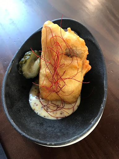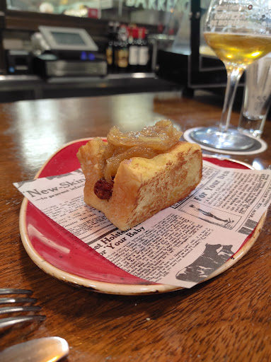 Read moreEl local es muy bonito y agradable. Se nota en cada detalle. Hasta bajar al baño es un gusto. La atención del personal estupenda. y todo funciona con suma rápidez. La oferta de su carta de pinchos fríos y calientes es muy buena. La presentación de los platos está muy cuidada. Lo único que le falta, en mi humilde opinión, es que la comida tenga más "sabor". Sucede con cualquiera de los platos llevan algo más de cocinado. Por ejemplo, la croqueta de txuleta, por 2,30€ que es una croquetita, está muy bien de textura su bechamel, así como el empanado y el punto de fritura, pero es una lástima que en la boca solo sepa a bechamel. El torrezno por ejemplo, espectacular. Estaba perfecto crujiente por fuera y tierno y jugoso por dentro. Jamás se me hubiese ocurrido mezclarlo con una mayonesa de piparras, pero es un acierto. Lo acompañaban un par de piparras y yo le añadiría alguna más, ya que la combinación del torrezno y la piparra en boca también es una explosión de sabor. Está claro que es un sitio en el que se esfuerzan por hacer las cosas bien y va por el camino para ser...