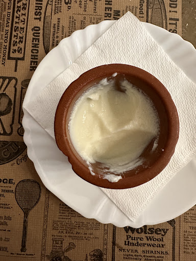 De postre pedimos cuajada y pudin... pero vimos que en boligrafo habian anotado una tarta de galleta y caramelo en la carta y quisimos probarla tambien (cuando algo se añade en boligrafo suele ser algo casero propio de la casa). Todo estaba muy bueno. No acabamos el vino y gaseosa q pedimos para acompañar... y me olvidé completamente de la guardia civil, de lo ridiculas q son a veces nuestras preocupaciones cuando encuentras un lugar amable y buena comida alejado del natural bullicio de una Morella en domingo de verano donde todo está completo.
