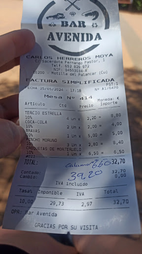 Read moreExperiencia mala..nos cobraron carisimo ,esta claro que nos vieron cara de no ser del pueblo, una tostada de mantequilla y mermelada 3€ café con leche aparte .Un montadito de calamares 5€.. un servicio de vino y gaseosa para 1 persona 9€..precios a la altura de la castellana en Madrid ..además al pedir el ticket porque en principio no lo trajeron me dijeron solo el total ..los conceptos ponia varios a excepción del café con leche ..en fin una pena que se aprovechen así de la gente que no es del pueblo..otro detalle es que éramos 3 personas yo tome un desayuno, mi hijo y mi marido almorzaron ..pues en todas las mesas ponían olivas y cacaos a excepción de la nuestra.lo dicho un abuso y una pena..ni lo recomiendo ni...