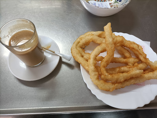 Read moreNo sé si ha sido porque había mercadillo cuando he ido, pero ha sido un caos. Se veía todo caótico. Las camareras por todos lados y la señora mayor (la madre) poniendo los cafés. El café muy regular, los churros... Uff soy de probar churros por donde voy, pero estos han sido de los peores. El local con mucho humo de aceite quemado que me dejó la ropa apretada. Ni que decir tiene que no...