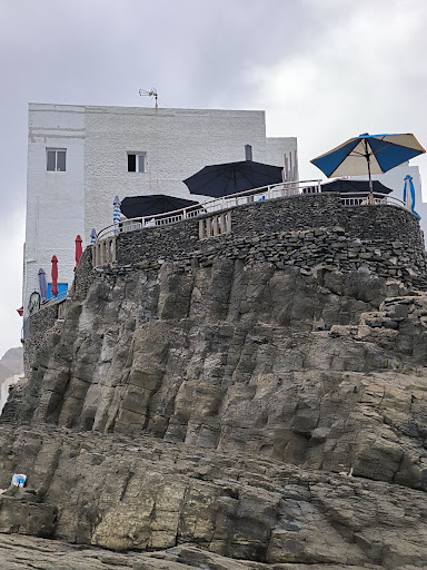 The restaurant is perched on a rocky cliff often frequented by fishermen. There’s a direct staircase leading from the restaurant down to the cliff, adding to its charm.