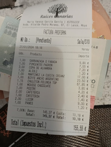 Read moreUbicado en El Lance, en un entorno que invita a la desconexión, el Restaurante Grill Raíces Canarias se ha labrado una excelente reputación entre los amantes de la buena carne y la cocina canaria de calidad. Es un lugar que, a pesar de su fama, mantiene un ambiente familiar y cercano, ideal para disfrutar de una comida o cena relajada.
