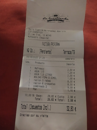 Read moreLugar chulo para un pueblo, fresquito con estos calores y limpio. Comimos en amplia terraza. El vino muy bien servido en cubitera con hielo y agua. El servicio bien y las raciones normalitas de tamaño. Destacamos las croquetas de cochinillo y rabo, los huevos con picadillo y postres, les encantó la tarta de queso. Al morro en salsa le faltaba sal y un poco de cayena y las ensaladas buenas, la hamburguesa les gustó. Si vais de paso para el vermut y comer está bien de precio. Gran...