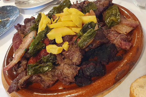 Read moreHemos comido GENIAL. Íbamos con dos peques y nos han tratado muy bien, tenían trona y opciones para que ellos comieran bien, y los adultos hemos disfrutado porque la comida es muy buena, la carne excelente, (recomendamos el chuletón espectacular y el plato de carne variada para compartir), los calamares y el pulpo de categoría, el vino muy bueno y con amplia selección para elegir (tienen una vinoteca a la vista) y el ambiente muy bueno, había gente pero no hay demasiadas mesas por lo que se puede hablar bien y te atienden a tiempo (y con buen humor!!). Después hay un paseo muy bonito por Muga para bajar la comida, está completo XD...
