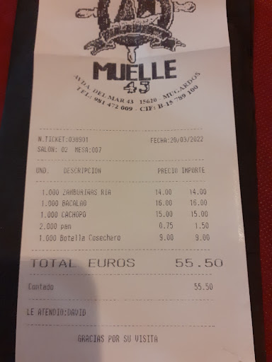 Muelle 43 no es solo un restaurante: es una pequeña joya de la gastronomía local donde el pulpo sabe a mar y cada detalle está cuidado. Muy recomendable para quienes buscan autenticidad y buen comer en la...