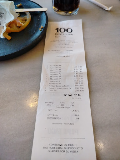 ¡Qué decepción total! Fui a "100 Montaditos" con la expectativa de una comida rápida y sabrosa, pero me equivoqué por completo. El lugar estaba abarrotado, y aunque había personal, parecían estar más interesados en charlar entre ellos que en atender a los clientes. El sistema para pedir es caótico, con largas colas y una espera interminable para que te den tus montaditos.