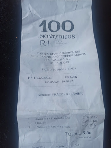 Read moreSin duda, no vuelvo a venir mas a 100 montaditos de Thader. La calidad de la preparación de los productos ha sido pésima, pues el pollo, bacon y demás ingredientes de todos y cada uno de los bocadillos estaban casi congelados y crudos. De hecho, los bocadillos dulces que nos hemos pedido estaban fríos, por lo que la barrita de chocolate estaba entera y no se había derretido ni lo más mínimo, a diferencia de otras ocasiones que el bocadillo está crujiente y la barrita de chocolate derretida, de modo que se nota que lo han calentado. Además, han cambiado la salsa brava y ya no es como la de antes (antes era anaranjada y ahora parece barbacoa)… yo no era conocedora de este cambio, por lo que me pedí un montadito que llevaba salsa brava (yo pensaba que era la de siempre) y al darme cuenta de que no era lo que yo esperaba, se lo comento a un trabajador y no me da ninguna alternativa, siendo la solución quedarme yo sin cenar ese bocadillo porque no me gustaba. Desde luego, seguro que no voy a volver a cenar aquí. [Visita...