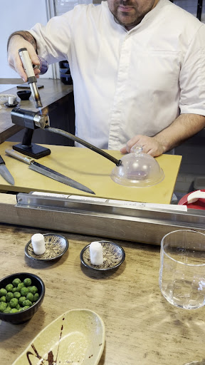 Muy recomendable, estuvimos cuatro personas en la barrita de fuera y un espectáculo el ver de primera mano como iba preparando todas las elaboraciones. probamos el Tartar de atún que a mi opinión es un primero muy acertado, fresco y con una mezcla de sabores super rica, también probamos el tataki de atún que estaba marcado levemente y acompañado de una salsa super rica junto con wakame que le daba su toque de gracia. Luego probamos los giozas de panceta y gamba que estaban muy buenas, el relleno era muy jugoso y con sabores que se podían diferenciar y apreciar fácilmente, pedimos también los wonton que nos recomendaron y fue una muy grata sorpresa, ambos dumplings te pedían si o si pedir más jajaja. A la hora de pedir sushi probamos sushis muy variados, si tuviese que resumir los sushis que probamos para no alargar mucho es que cada uno destacaban en lo suyo y a mi parecer te hace difícil decidir cual era mejor. El arroz está perfecto y se nota que al hacer las piezas las elaboraciones están pensadas con lógica, refiriéndome al juego de texturas y sabores. Cabe añadir que desde un principio el Cocinero nos recomendaba y explicaba la mejor manera de comerlo y el orden, y para mi eso es fantástico ya que no defraudan sus palabras y hace que la experiencia sea mucho más grata. De postre probamos los mochis, que, entre la textura suave y la gama de sabores que tenían no defraudaron. Agradecer tanto al cocinero como a su compañera, el trato y el servicio, se nota desde el primer momento el trabajo de que hay detrás y la buena experiencia que te quieren proporcionar, sin duda, ¡de...