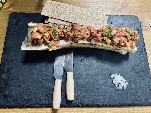 Read moreCocina gourmet en un mercado tradicional. En el Mercado de Abastos de la pequeña pedanía murciana de la Alberca, a escasos kms del parque Regional El Valle y Carrascoy. Tuétano con steak Tartar, Costillar de cerdo, Tostada de higo con roquefort, Burrata con tomate confitado, postre casero de los de verdad (hecho en casa) crema de vainilla, todo regado con un delicioso vermut granizado. Por no mencionar el café asiatico, que aunque su nombre pueda sugerir otra procedencia, es una especialidad de la región....