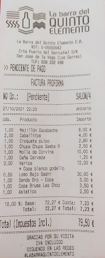 Read moreLo más interesante de los locales que no tienen la pretensión de ser estrellas del rockandgastro es la implicación de cada una de sus partes. Desde la sala hasta la cocina. No importa, como es el caso en La barra del quinto elemento, que en un local limpio, de pequeñas dimensiones, ruidoso, pero luminoso, la atención sea de las de emocionar. Por sencillez y buena voluntad, porque quieren mostrar que creen en lo que ofrecen y proponen. Porque si es bueno no tiene que vestirse de florituras innecesarias. La carta es correcta, pero en mesa es mejor que leída. Mejillones con un escabeche que quisieran los grandes de la comunidad. Punto perfecto del mejillón y con una salsa para mojar lo que haga falta, de pan, que bien podría tener apellidos, a alguna cosa que quisieran en esta casa. alguna almendra y un poco de salchicha de chato para hacer boca Buena la croqueta de sepia. Muy buena. El caballito, bien, un poco simple la salsa de mayonesa y kimchi, pero son las modas. Magnífico el solomillo con hueso. Como es una casa muy generosa nos hacen felices con unos restos de vinos tintos que habían descorchado el día anterior. Bebemos Do Ferrereiro. El postre, la tarta de queso, absolutamente olvidable. Pesada, sin gracia, Una vuelta habría que darle para estar a la altura de lo comido en la parte salada. Bien el Stilchetón, que de algo hay que disfrutar con los quesos. Una pena que estén flojicos de vinos generosos. Porque los que proponen como ampliación son fácilmente olvidables. Interés e inteligencia en la selección de productos. Precios correctos. Servicio entregado. Gran alegría. Un domingo muy de agradecer a estos señores del quinto elemento. Lo bueno, siempre hay capacidad de mejora, que si pan, que si regañás o colines memorables, y la carta de vino, una vueltecica. que está sencilla, y de precios correctos, pero hay mucho más mundo para beber. No se pierdan una visita a esta casa. Su personal, y lo que llega a la mesa, lo merece. Muchas gracias por su...
