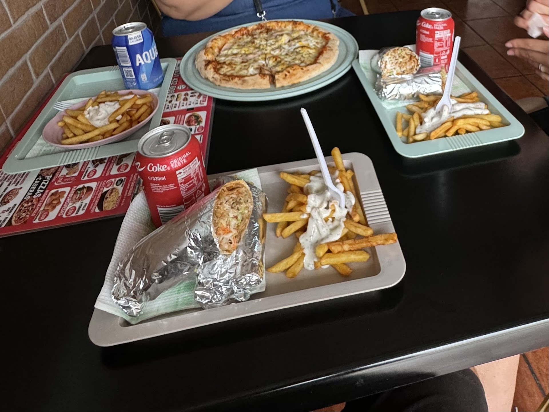 Read moreFui este sábado a pedir un Durum por la noche para llevar. El trato no fue nada bueno, intentando que pidiese el Durum gratinado y el menú porque era más caro, cuando yo quería un Durum normal únicamente. Lo pagué y se pusieron a hacerlo, pero un dependiente de la barra con gorra empezó a mirarme mal hasta el punto de decirles que iba a otro lado y luego volvía para no tener que estar aguantando sus caras. Luego recogí el durum y me lo comí, estaba seco porque no estaba mezclada la carne con el resto, estaba la carne en la mitad del durum seca y en la otra mitad la lechuga con un poco de salsa, pero bueno, me lo comí igual y me eché a dormir. Unas 3 horas más tarde me levanté a vomitar con el estómago fatal, tuve que ir varias veces hasta que no me quedaba absolutamente nada.. terminando por salir rojo al final... que quiero pensar que era la salsa roja y no sangre. Llevo dos días con el estómago fatal desde aquel durum (no me ha pasado en mi vida) y ya tengo hasta dudas de si le echaron algo a posta, porque no me había pasado algo similar nunca, y cuando lo cogí, me dieron ganas de tirarlo directamente porque sus miradas me decían que ese durum no tenía que habérmelo comido desde...