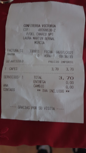 Read moreSe han extendido mucho las confiterías que ofrecen servicio de cafetería. Me parece la combinación perfecta si quieres tomar un café y "no fallar" con el acompañamiento. En mi caso, tuve que hacer un esfuerzo para ceñirme a mi tostada con aceite y sal... soy demasiado goloso para no desear tooodo lo que había expuesto. Pero lo conseguí! Aunque la tostada me parece que no sería la siguiente elección cuando vuelva. Pan bien tostado, pero muy normal, nada que sea reseñable. El café estaba bueno y el precio...