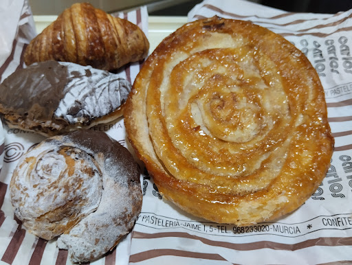 Acudi a esta pastelería, confitería y panadería situada en el centro de la ciudad de Murcia, donde tienen un local con amplia variedad de productos de todo tipo. Se trata de un establecimiento con amaplio surtido de dulces con bollería y pastelería, y su apartado de salado con hojaldres, empanadas y demás. En mi caso quería probar su apartado dulce, por lo que decidí probar un croissant pequeño que estaba bastante bueno muy crujiente pero no seco en el centro que estaba súper alveolado como me gusta y señal de calidad aunque sin mucho sabor a mantequilla y con un ligero regusto a vainilla , un hojaldre con canela que estaba muy crujiente con una masa similar a una palmera pero con el ligero toque de la canela y algo caramelizado que me gustó bastante, una pequeña ensaimada con chocolate un poco por dentro y en la cobertura que me gustó ya que no estaba nada seca y al tener virutas de choco no era solo masa y la mezcla mejoraba notablemente, y por último un bollo con relleno de Nutella que no estaba mal pero la masa me falló un poco por estar demasiado seca y dura aunque el relleno escaso si que estaba bueno. Todo tuvo un...