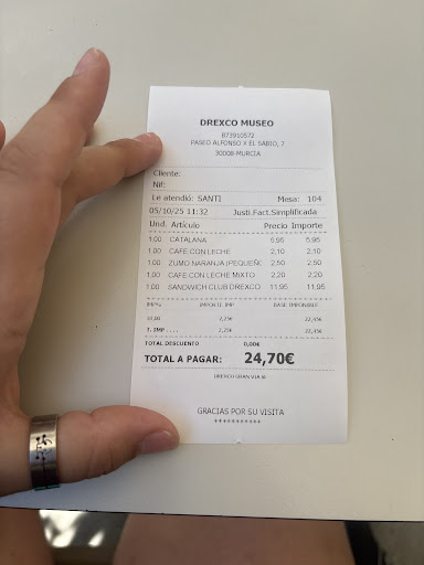 Le doy una estrella porque no le puedo dar menos por los siguientes motivos: El servicio un poco meh la verdad, no me ha gustado nada. La rapidez del servicio deja bastante que desear, puesto que los bocadillos han tardado mucho en salir y tampoco hay tanta gente como para eso. Hemos esperado una hora y media para poder desayunar y no ha sido ni al completo porque me han faltado productos. El café la verdad que no es el mejor del mundo, de hecho, me he pedido un mixto y sabe raro, también he pedido una napolitana y está tiesa, como si llevase desde ayer en exposición, reconocido por la camarera, tampoco me han puesto solución simplemente calentarla cuando esa napolitana no está para comer. Se han equivocado con mi pedido y encima me lo rebatían todo el rato. Hemos pedido un sándwich vip club drexco y aunque lleva muchas cosas, carece de sabor, las patatas están hechas de hace tiempo y recalentadas, están hechas por fuera pero crudas por dentro, llevan muchísimo aceite y sabe a aceite quemado y no cambiado desde hace días. También hemos pedido un bocadillo catalana y el pan está muy duro. Hemos pedido una tosta de aguacate con huevo poche y nos han traído otra cosa por equivocación, y me quieren hacer pagar la equivocación más lo que yo he pedido. Sinceramente no pienso volver a este sitio tan ruin. He tenido que hablar con la encargada porque la camarera me estaba diciendo que era mi culpa cuando la que se había equivocado era ella. Llevo 12 años en la hostelería, y este sitio mancha el nombre y el oficio de la misma. Encima es un sitio carísimo para la poca calidad que tienen. Si queréis desayunar bien, no vengáis aquí. No voy a volver ni aunque sea la última...