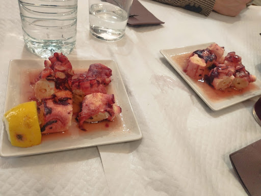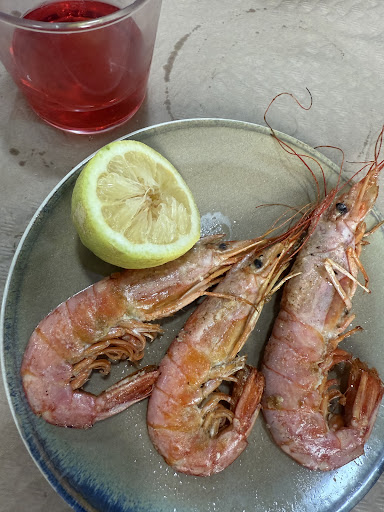 Hemos probado: ensaladilla de marisco especial, un par de caballitos, plato de chirlas, calamar nacional plancha, cuatro zamburiñas, 1/2 ración de gamba blanca plancha, un montadito de salmón y queso, un montadito de sobrasada con queso, una tarta de Oreo y otra de coco. Todo ello acompañado de cerveza fresquísima.