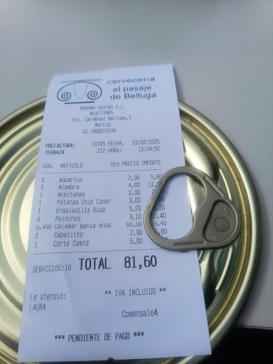Hemos tenido que pedir dos veces la cuenta, para terminar... 81,60 EUROS por un apertivo que han tardado en servir 50 minutos.