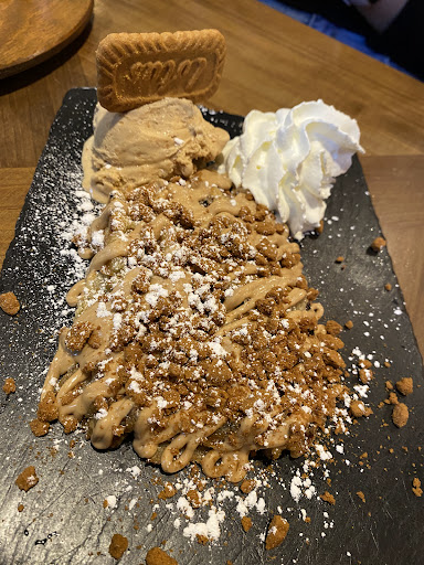 -Gofre pecado con bola de turrón: 9,5/10. De sabor muy bueno, lo disfrutamos. Bastante cantidad de salsa y toppings, sigue siendo un precio muy excesivo para un gofre. La masa nos pareció un poco pequeña, además algunas partes vinieron un poco quemadas. Eso si, quiero destacar el helado de turrón, muy bueno, le pondría al helado un 10/10.