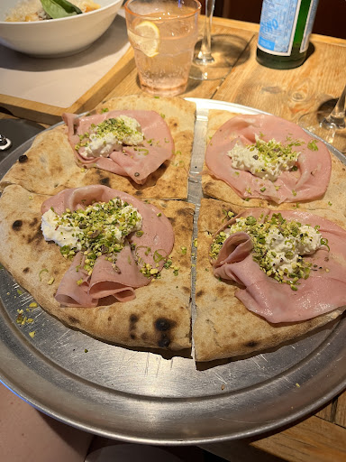 La comida muy buena, no puedo decir lo contrario. Sin embargo, no puedo decir lo mismo del camarero que nos tocó y su servicio: pedimos pizza sin gluten y la respuesta del chico fue que no les quedaba y que si lo habíamos reservado (se reservó la cita pero no se comentó nada de celíacos porque no lo ponía como requisito ni nos preguntaron si había alguna intolerancia); lo peor no es que no hubiese que, aunque mal, puede ocurrir, sino la forma de justificarse el muchacho sin pedir en ningún momento disculpas y comparando como que es lo mismo que si se quedan sin champiñones y que la culpa era nuestra por no informar antes (en su carta no hay ninguna información sobre que es necesario reservarla previamente). Nunca, en ningún momento hubo una disculpa, solo excusas a la defensiva. Bueno, tiempo más tarde, apareció otra camarera y se disculpó, más o menos. Luego, éramos 8, traen la comida de 7, se les reclama la última pizza y, en lugar de decir que se les ha pasado, tardan la vida (todo el tiempo en hacerla de cero y no se disculpan por la tardanza). Finalmente, a mitad de estar comiendo (a varios le quedaban la mitad de la pizza) viene a decirnos si vamos a pedir más y que si ya traía la cuenta; me parece muy bien que queráis cerrar pero el retraso en la comida no ha sido culpa nuestra sino del propio local. Tampoco queda bien empezar a limpiar (por el olor a lejía o detergente) mientras hay gente comiendo. He de decir que había 2 mesas más comiendo (no estábamos solos en el local). Insisto, lástima de servicio porque la comida era para volver. Ah! Como sugerencia, la música ambiente no pega para nada, es más parecida a una tienda de ropa que a un restaurante (demasiado...