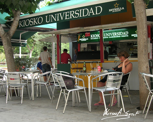 Read moreEste kiosko esta enfrente de la Universidad de Murcia y como buen sitio frecuentado por estudiantes tiene precios muy muy bajos. No es un sitio para nada lujoso, al contrario, y por ello se caracteriza, pero suele gustar mucho a todo el mundo. Hace bocatas calientes: lomo, salchichas, hamburguesas, tocino, etc. Y tiene muchas cosas para picar, como olivas, patatas, cortezas, frutos secos, etc. La terraza siempre está a tope, de hecho es bastante difícil conseguir mesa. Solamente tiene terraza y no es que la limpieza sea su fuerte, pero es para lo que es, tomar cerveza barata y...
