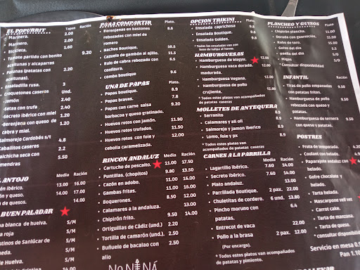 Read moreMal servicio, sobre todo por el camarero tatuado, prepotente y maleducado. Llegamos un grupo grande a las 15:40 y nos dijo de malas formas que si no nos dábamos prisa la cocina cerraba. Para quitarnos de enmedio rápido nos propuso un surtido según él de tapas (que ni nos dijo qué venía después de preguntarle) "marisco" y carne. Nos comentó que ya era suficiente ese surtido y que todos íbamos a comer, venían 6 croquetas, 6 langostinos plancha fríos, 2 sepias pequeñas, carne fileteada con patatas fritas y chipis, los chipis no recomendables, el rebozado se cae a pedazos y están insípidos. Contando que éramos 7 adultos evidentemente nos quedamos con hambre y tuvimos que pedir un par de tapas más a parte. La broma costó más de 250€ contando las bebidas también y algún café. No sabría si recomendar este sitio porque desde luego no tuvimos una buena experiencia. La otra camera que se llama Puri todo lo contrario que el tatuado, amable y muy atenta...