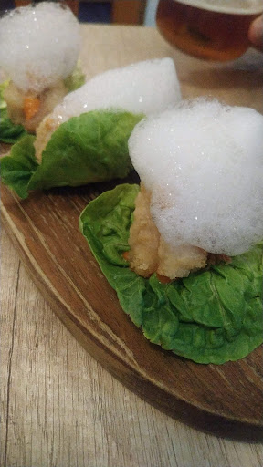 Menú cerrado con 5 platos que, todos juntos, conforman poco más que un aperitivo (croqueta de dorada y sardina en tempura, "tallarines" de sepia con shiitake, ravioli de atún, cabracho y canelón de pollo, que dicho así parece mucho, pero los platos eran de la medida de un platillo de café) Lo mejor de todo, es que salimos con hambre pero con 90 pavetes menos (menú X2 más 5 cañas).