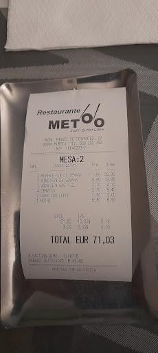 Read moreEsta mañana me he despertado con un fuerte estruendo, ya no se si fue real o mi mente todavía tiene muy presente la experiencia vivida ayer mientras comíamos en #SushiMetoo de Murcia. Cuando veía como entraba el coche por la espalda de mi pareja y apenas me daba tiempo a girar el cuerpo para esquivar lo que venia, sentí impotencia, pánico y quien sabe qué más... ver a mi pareja tirarse al suelo para salvarse y yo tirando de él intentándo arrastrale para alejarnos de la escena en los primeros instantes en los que no sabes si es un atentado y va a explotar algo, van a entrar a atarcar o es solo un coche que ha perdido el control. Después de determinar que era solo un accidente, y verificar que no habia nadie malherido comenzamos a salir a la puerta para tomar aire, abrazarnos y tomar perspectiva mientras todo el cuerpo temblaba y nos saltaban las lágrimas porque todos estábamos vivos. En esos momentos tan traumáticos, sin llegar aun ni la policia ni ambulancia ni nada, el camarero salio para pedirnos a todos entrar a cobrarnos la cuenta. Cuando lo dijo por segunda vez, le dije que estaba siendo insensible y mostrando inatención a los clientes. Ni un vaso de agua. Otro camarero, español, se dio cuenta de la falta de tacto y comenzó a cuestionar y frenar a sus jefes. Despues de testificar ante policia nos cobraron la cuenta. Al dueño le expresé lo que pensaba. Sé que no volveré a un lugar que no prima cuidar a sus clientes y atenderles lo mejor posible mas allá del dinero a la vista de su reacción en una situación así. Yo era clienta habitual. Hace 7 meses publiqué una buena reseña de este local "La comida está muy buena y recién elaborada. El servicio es rápido y la calidad muy alta. Puedes pedir hasta que no puedas más. El precio en fin de semana es 14.95€ sin...