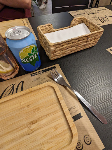 Read moreFui a comer con mi pareja, para empezar, tomamos una ensalada de pollo teriyaki, muy completa y sabrosa. Después, probamos los tacos al pastor, que no tienen pérdida ninguna, ¡qué ricos! No nos podíamos ir de allí sin probar las hamburguesas y nos decidimos (como buenos amantes del pollo) por la hamburguesa de pollo thai, que, siguió sumando a nuestra agradable experiencia. El pan crujiente y esponjoso, el pollo súper tierno y la salsa lo mejor…Cuánto sabor en un bocado. Para terminar, pedimos una cookie, sinceramente me habría pedido 4 más porque se me deshacía la boca con cada cucharada. La atención ha sido fenomenal, el chico ha sido muy atento y lo ha explicado todo de maravilla, nos recomendó el mejor postre del mundo así que ya nos tiene ganados. Se nota que hay mucho curro tras cada plato y como nos comentó el camarero hasta el kétchup es casero. Sin duda...