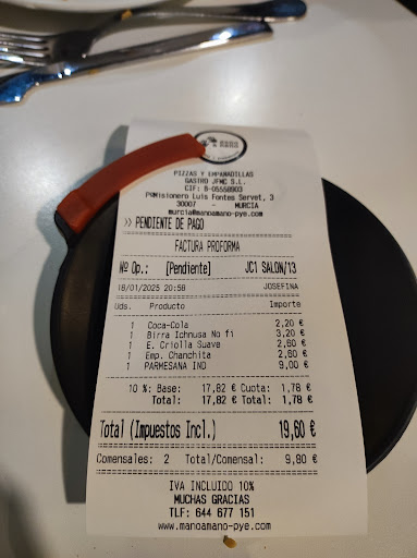 Durante mi travesía por las tierras murcianas y con mucha hambre arrastrada desde Valencia, ya sea por mano de Dios o del destino, en mi camino se cruzó el restaurante Mano a Mano(▀̿̿Ĺ̯̿▀̿ ̿). Después de mi madre y de Messi, lo que más amo en este mundo son las pizzas y mis panas me hablaron tan bien de este lugar, que me dejé llevar por ellos. (^_^)