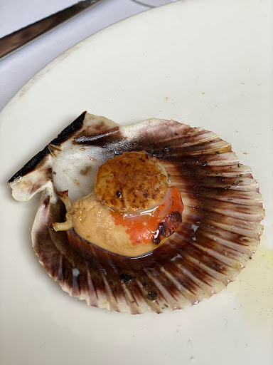 Comenzamos con las típicas MARINERAS; un TOMATE CON BONITO espectacular, plato 100% murciano; unas VIRUTAS DE CALABACÍN en tempura con tocino muy recomendables; unas COQUINAS sabrosisimas, producto de temporada aunque de muy reducido de tamaño; y por último unas ZAMBURIÑAS a la plancha que se deshacían en la boca.