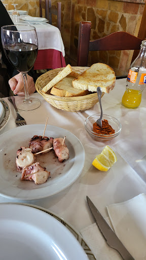 Después de una hora en el restaurante, con los entrantes llegando con mucho tiempo entre plato y plato y ya un poquito mosqueados, se lo reprochamos al camarero y entonces parece que se apretan un poquito (pero no mucho) y nos traen la carne de pollo y de cordero prácticamente quemada y/o recalentada, y además, las raciones muy escasas. Yo particularmente ya no tenia ni ganas de comer, ni animo de querer seguir estando allí, por lo que ni tome postre, ni café, ni helado ni nada, de hecho de los 8 que íbamos solo pidieron postre y café 4 personas...Pues con todo y con eso tocamos los 8 a 32 eurazos por cabeza, pero eso si, con un taponcito por gentileza de la casa para que nos vallamos felices y se nos olvide el sablazo y el mal servicio. Respuesta al Propietario: Hombre, por supuesto que tienes que mejorar para que no se junte la comida con la merienda, pero lo peor no es eso, lo peor es lo que no has querido mencionar. Lo peor es que nos has puesto raciones de entrantes para 8 personas escasas, raciones de carne para 8 personas escasa y quemada, y encima nos lo has cobrado a precio de restaurante de 3 estrellas Michelin. En fin que visto lo visto y la experiencia tan desagradable que he tenido hoy en tu restaurante ni mi familia ni yo...