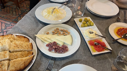 This restaurant features the concept of a buffet (all you can eat) but served at your table and it includes basic alcoholic drinks in the price, which is about 35 dollars per person. Apart from the slow service, somewhat justified as main dishes (three paella choices from which you choose) are prepared to order, paellas are thought for two but you can stretch it to three if one of them is a child. It does not help that the concept of this restaurant is that servers know better than diners when the main dish should be ordered. We were short of time and that cause a bit of a chaos. The entree or fist course is an assortment of delicious high quality cold dishes (you get one of each) and you can reorder more of the same as well as more drinks as you please while you wait the mandatory 25 to 35 minutes that takes for the paella rice to cook over fragrant vine wood. I specially recommend the focaccia bread which is baked while you wait, (it takes a bit to arrive, and you end up eating the first course without it, (a capital sin in Spain). We ordered more bread to a gentleman server but we didn’t get it, apparently the man in question is not on speaking terms with the lady Maître / server that waited on our table. I can foresee diners in the future of this restaurant, to just have an iPad on the table from which to order first courses, drinks and bread while you wait, as they seemed to be short of servers. We were hungry and in hurried, and it was a blessing to find an unreserved table in a nice looking well refrigerated and elegant but not snobby restaurant. The restaurant has a free and ample / shaded parking lot. I highly recommend making a reservation and pre-order the focaccia bread. Final note: The "Holy cross de Caravaca Sanctuary" is just a short drive from the restaurant. If you go in 2023 you will get a "Plenary Indulgence" or "The Jubilee" upon visiting the sanctuary nearby, which will give you faster entrance in heaven when you die. While at the sanctuary, make sure to drop by their gift shop and get a box of “REINA” brand "Yemas de Santa Maria", an addictive concoction of candied egg yolks covered in rich chocolate made...