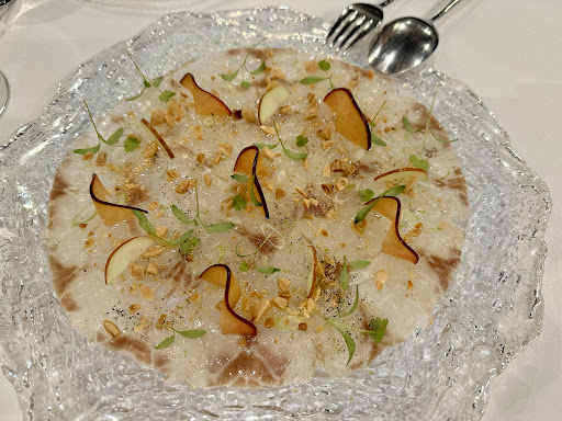 Read moreEl otro día fuí con mi esposa y debo decir que me impresionó. Desde el momento en que llegamos, el personal fue amable y atento, asegurándose de que tuviéramos una experiencia gastronómica cómoda y agradable. La comida era de primera categoría - cada plato que pedimos estaba preparado por expertos y lleno de sabor. Destacamos las croquetas de jamón, las vieiras y gambas con salsa kimchi y el carpaccio de ternera. Pero la verdadera estrella del espectáculo fue el secreto de cerdo, servido con puré de apionabo, estaba cocinado a la perfección y los sabores eran increíbles. Los postres también fueron una delicia, sobretodo la tarta de queso. En general, el ambiente relajante y agradable y el personal estaba bien informado sobre el menú, ofreciendo recomendaciones y sugerencias de maridaje para el vino.