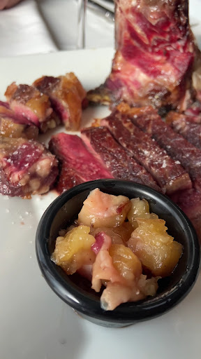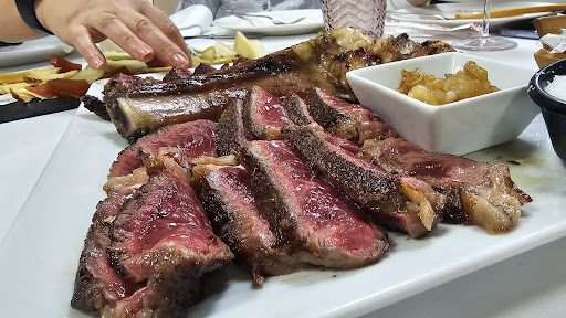 Degustamos diferentes platos, como por ejemplo el carpacho de salmón y las croquetas entre otros y todo de muy buena calidad. Pero si tuviese que decantarme por un plato, concretamente, yo que soy fan de la carne madurada, tengo que recomendar el chuletón de vaca vieja. Estaba perfectamente cocinado, presentado y su sabor fue increíble, de los mejores que me he comido. Eso sí, también tienes que pagarlo, como es normal.