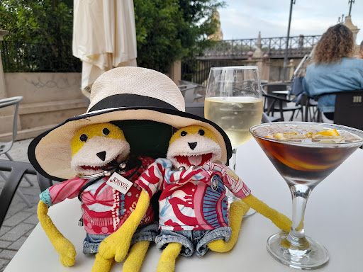 I will give this bar 5* for the lovely river side location. The sort of spot that should make even Paulicarus and Jorvic happy. Mid April and still light at 8pm. (pre Franco Spain were on UK time..and some want to revert from Berlin time!) Alpine swifts swooping over the river. Maybe eating all the mozzies?..no bites so far! A white wine and a vermouth. Then a large beer. Very chillaxing. A small modern bar with most seating on the riverside...