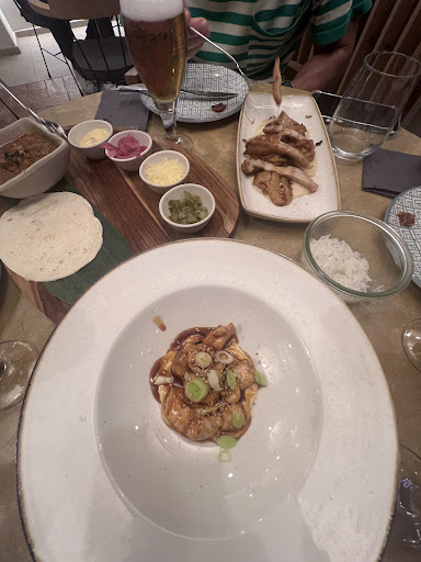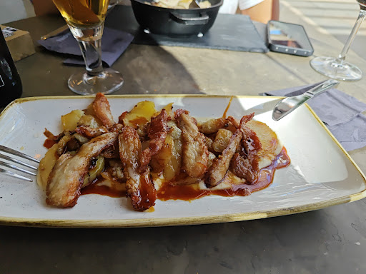 Read moreEl sitio muy bonito pero teníamos reserva y nos tuvieron un buen rato esperando. Cuando nos sentamos, ni siquiera nos dan la carta, la tuvimos que pedir cuando a otras mesas se la daban nada más sentarse. Mientras mirábamos la carta, veíamos a gente esperando en la puerta para conseguir mesa, a esto que cuando los sientan enseguida le toman la nota de la bebida, trayéndosela al instante y encima le anotan el menú (decepción para aquellos que nos gusta platos para compartir o tapeo) cuando nosotros llevamos bastante tiempo esperando que nos tomasen nota y pasaban de nosotros hasta que nos hartamos de ver lo que estábamos viendo y no dábamos crédito de que gente que había entrado más tarde ya estaban comiendo y a nosotros no nos habían ni tomado nota ni de la bebida. Pedimos y la batatas fritas se notaban que llevaban tiempo hechas y estaban medio frías pero estaban buenas. Mi pareja pidió canelones trufados (un poco empalagosos) y yo solomillo con salsa de queso que relativamente no me pude comer todo porque la mayoría del pollo estaba CRUDO un poco más y sale corriendo el pollo, menos mal que el pulpo estaba blandito y muy bueno por lo que pude comer un poco.Postres buenos sin más. No sé si volveremos porque la experiencia...