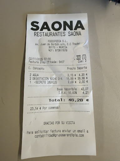 Al final de todo, con los extras de las patatas, bebidas y el plus por el pulpo, 45 euros.