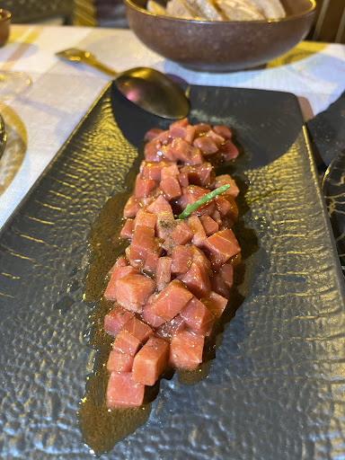 La cuenta no nos la trajo el Juanma. Nos la acercó un ayudante, un chaval que no nos había servido y que habitualmente está recogiendo mesas o preparando cafés. Tuvieron que rehacer la cuenta porque nos habían cobrado bebidas que no habíamos tomado. Una vez revisada, 104 euros!! Juanma, haces honor al nombre de tu local! Me pareció un importe totalmente injustificado. 52 euros por persona! (el plato de huesos de atún 27,5 euros!! jjeje). Lo sentí por mi amigo. Le preguntó al "pinche" por Juanma, pero le dijo que estaba liado, y no vino ni a despedirse. He visto las fotos que cuelgan los clientes, y he leído muchas reseñas positivas. Por eso escribo esta reseña. Rechazo el trato recibido, especialmente por mi amigo, El ha confiado en Juanma, y Juanma ha abusado de la confianza: hemos tenido una comida muy mediocre por un precio que nos habría posibilitado reservar en cualquiera de los mejores...