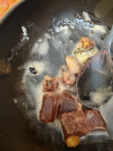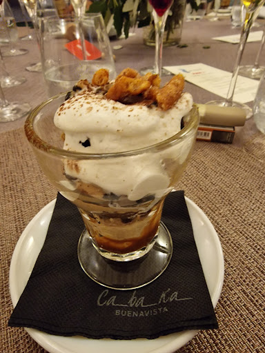 Después de los postres (la mejor Créme Brûlée que me he comido jamás) nos pusieron un bonsai con algodón de azúcar con liofilizados de frutos rojos. En la base varias rocas de chocolate negro con cacahuetes. Un detalle que deja muy buen sabor de boca.