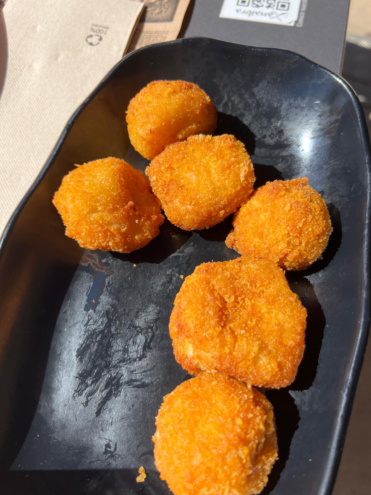 Nos quedamos con ganas de probar alguna cosa más y nos acercamos también para cenar. Está vez pedimos los baos y croquetas. Los baos nos parecieron bastante sosos, la mezcla del pollo chipotle con el queso san Simon no me dijo nada, y además el pollo algo seco. En cambio las croquetas espectaculares, suerte que pedimos una mixta porque las de zamburiñas estaban ricas pero las de ibéricos son una maravilla!