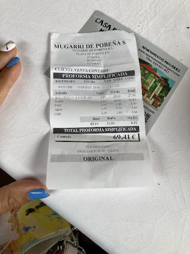 Read moreEn cuanto descendemos por la carretera que conduce a Pobeña y llega a la plaza, enseguida lo distingues. El edificio exento verde está a otra altura, real y metafóricamente hablando. Si llamas de los primeros, te sentarán en el comedor, si tardas en el porche, y por último en el espacio abovedado separado del bar por biombos. La terraza la reservan para comer en verano, o aperitivos todo el año. Mugarri se apellida Erretegia, que significa "parrilla", dato revelador. El marisco que luego va al plato, nos da la bienvenida al local desde la pecera situada sobre la barra. Cuenco de sopa por cortesía, degustación de croquetas (jamón, bacalao y chipirón), ventresca en ensalada con tomate (pelado, como debe ser), jibiones recién cogidos, y tarta horneada de queso + bola helado chocolate. Alicia e Idoia atienden con profesionalidad y sin agobiar; y por si quieres echar una siesta tras haber comido de lujo, en la planta superior regentan un apartahotel. Éstos del Mugarri lo tienen...