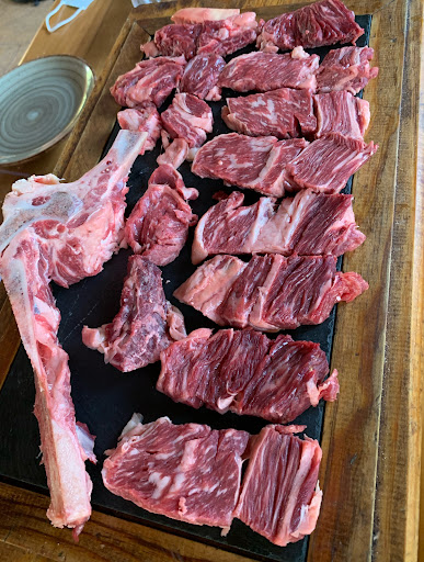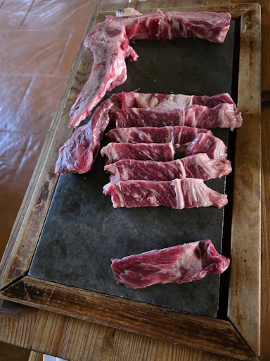 Read moreAlgo retirado del centro de Mutxamel, pero accesible cómodamente en coche. Espacio amplio para aparcar. Tiene un salón interior y un reservado (donde comimos, calentados por una agradable estufa), además posee una terraza que debe ser de lo más provechosa en verano. El salón principal al fondo cuenta con un parque de bolas donde pueden disfrutar los más pequeños. Te traen de primeras la bebida con pan y tomate con alioli. Comimos de entrantes croquetas de rabo de toro, mollejas y calamares a las andaluza (los tres platos de buena proporción y estupendo sabor), luego los platos principales rabo de toro (fuimos a este sitio para probarlo, porque mi hijo no lo había comido nunca) y un lomo alto premium. El rabo de todo una ración de la que perfectamente comen 3, de sabor exquisito con su salsa para rebañar, acompañado de patatas y pimientos. La carne estupenda servida poco hecha en una piedra hirviendo para que completes al punto que la desees. Los postres de la casa y muy buenos. Hemos comido 5 personas y hemos salido a poco más de 30 euros. La atención de primera, muy atentos y agradables. Mis hijos y el resto de la familia encantos, yo feliz con la elección. Seguro...