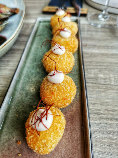 Read moreComer en A Furna es un placer para los sentidos que no te puedes perder. Las combinaciones de ingredientes dan lugar a platos maravillosamente originales, los materiales son frescos y de primerísima calidad y la elaboración es perfecta. Sin duda alguna este fue el gran descubrimiento culinario de estas vacaciones. Para muestra, algunos botones: El bonito con crema de calabacín y reducción de coca cola y soja que nos sirvieron de aperitivo estaba espectacular. Las zamburiñas con velo de panceta estaban brutales, con una combinación de marisco / carne en su justa medida para no restarse sabor entre ambos. Las croquetas de erizo de mar y ali-oli de anchoa nos enamoraron al conseguir una textura crujiente por fuera y una bechamel cremosa por dentro que te explotaba al morderlas. El pulpo a baja temperatura con parmentier de queso de tetilla nos obligó a untar y untar una vez que acabamos de saborear el pulpo en un punto de brasa perfecto. El bonito en su punto con crema de puerros y salsa Teriyaki estaba jugoso a más no poder y la mezcla de sabores era alucinante. La tarta de queso al horno de brasa y el coulant de chocolate con contraste frío de helado de mandarina fueron las guindas del pastel gastronómico que disfrutamos en A Furna. El precio de cada plato es totalmente justo en relación a su calidad, el trato de los camareros fue genial y las recomendaciones en cuanto a vinos de la zona nos permitió seguir descubriendo caldos locales. Comer aquí es una experiencia culinaria que no debes perderte si eres amante de degustar alimentos de calidad con toques...