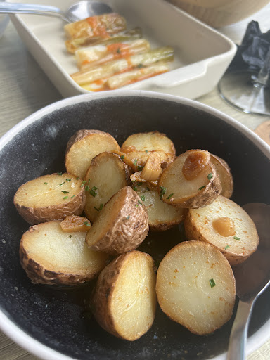 I liked the place as soon as I found it on google maps. As an Italians being offered great sourdough bread and olive oil as a starter was the perfect introduction. I wasn’t super hungry, so I only had a main. Tuna with a creamy garnish and baked potato on the side. Simple and delicious. Perfectly cooked and presented. True Mediterranean cuisine. The waiters were nice, the one that took the order a bit in a rush, but all the tables were taken. The interiors looked brand new and stylish, without going over the top (in a good way). Price was fair for what you...