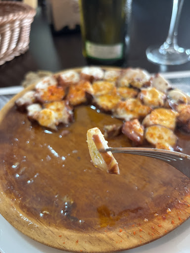 The food was nothing special. We had fish (Pulpo a Feira) and meat (Raxo). The Pimientos de Padrón were very good. The salad was poor, consisting of salad, tomatoes and onions only. We were given packed oil and vinegear and salt to create our own dressing. You can save the money for the desert, tarta de queso and flan de queso. It's just nothing special or worth ordering. Service was poor. We had to call the lady several times to express our wishes. We wanted to pay and the service was eating icecream behind the bar. We heard the staff gossiping about us. We don't speak Spanish very well but understand it quite well. There are better places to go to nearby and to spend ones money ... for sure. The food looks as shown on the menu, so no...